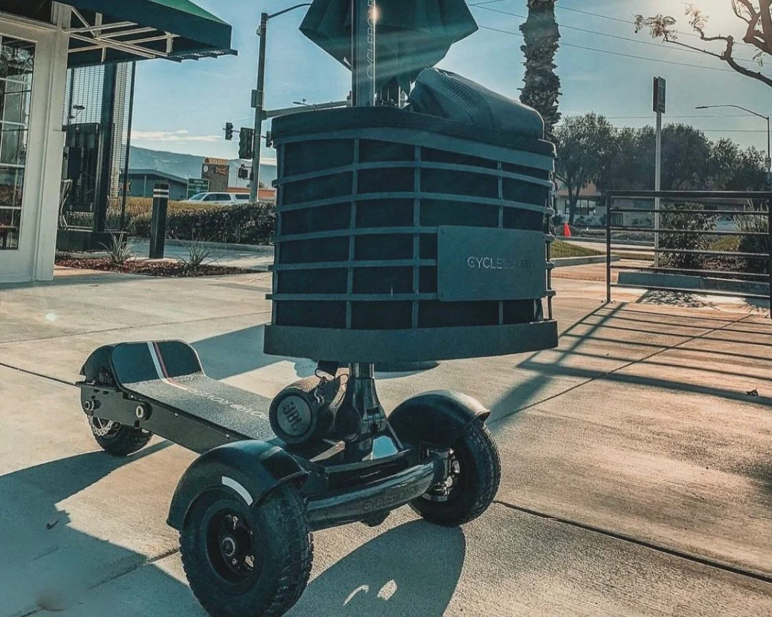Solution: The CycleBoard cargo accessory series will allow users to the be backpack-free by using quick rack attachments and baskets to house and carry all the personal items riders wish to bring.